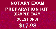 Our Notary Public Examination Kit is a compilation of about 100 notary public exam sample questions. It is designed to prepare you for the California notary public examination once you've taken one of our courses. These questions are similar to questions appearing on the exam and will greatly enhance your chances of passing it on the first sitting. Order it here for $17.98.